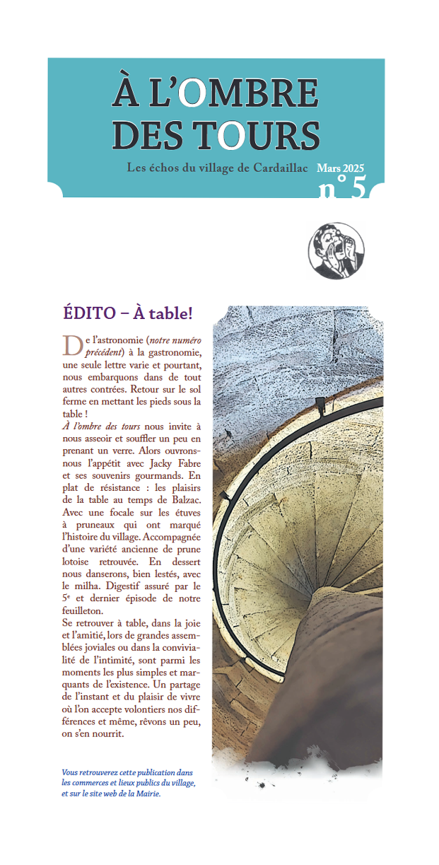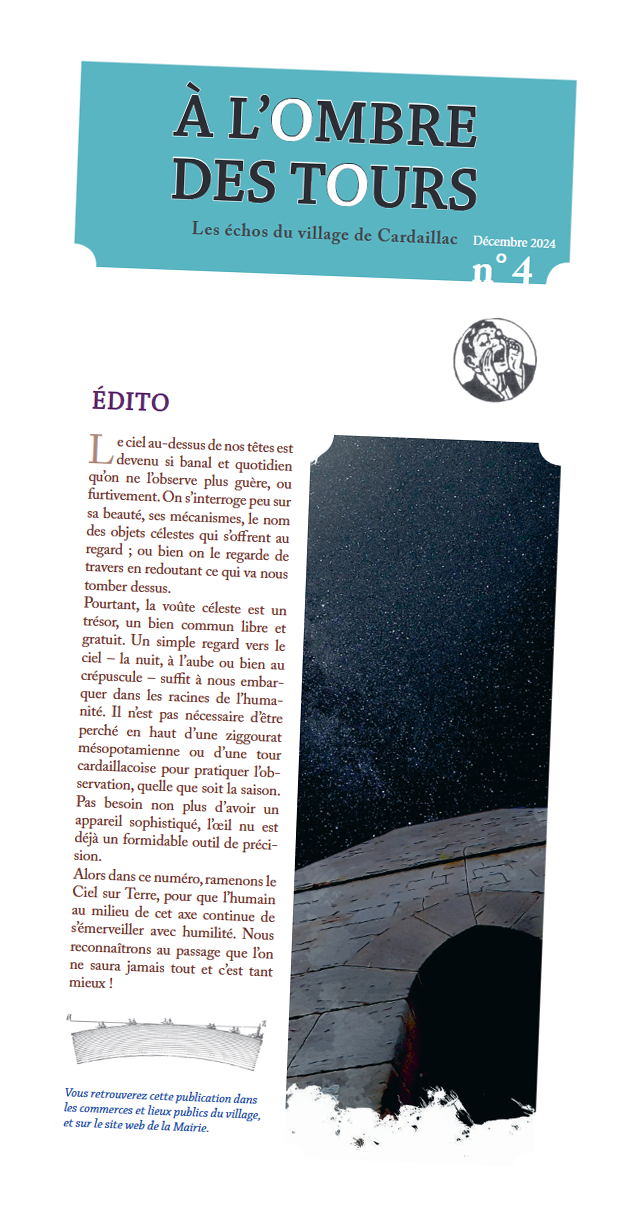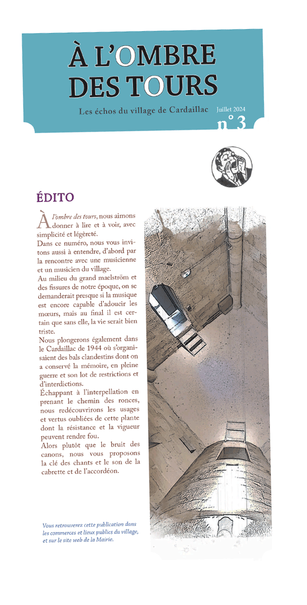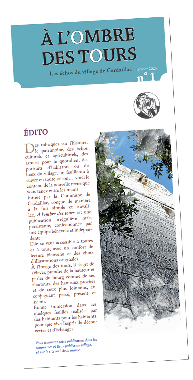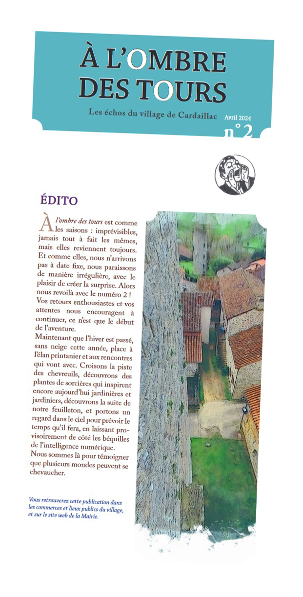 Initiée par la Commune de Cardaillac, « À l’ombre des tours » est une publication irrégulière mais persistante, confectionnée par une équipe bénévole et indépendante.